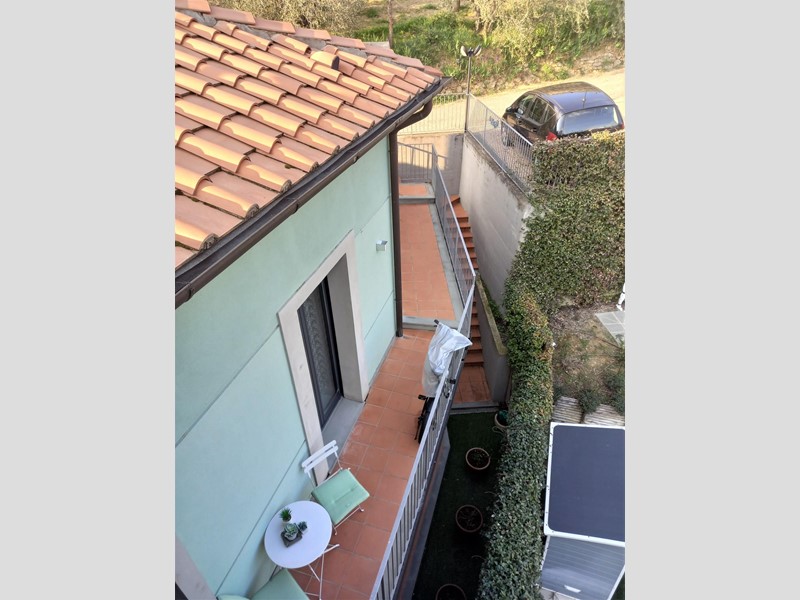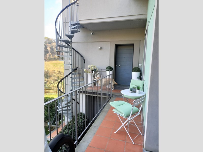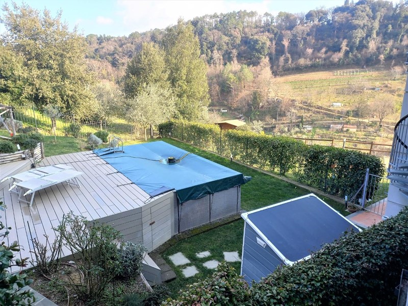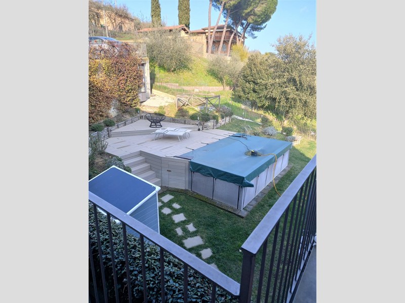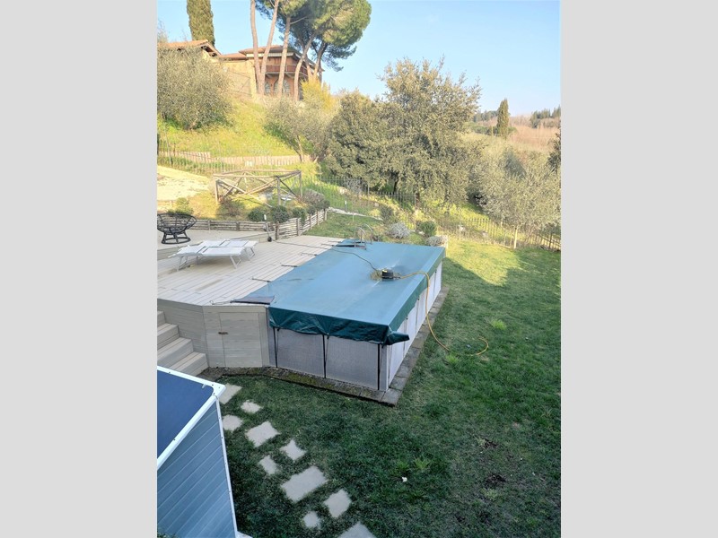 A 5 minuti di auto dal centro di Poggibonsi, in zona collinare, bellissima unità abitativa ubicata al primo ed ultimo piano di una palazzina anni 50, di recente e completa ristrutturazione. Luminosa ed accogliente, essa è dotata esternamente di cappotto termico ed è ottimamente rifinita al proprio interno ove risulta dotata di ogni confort; consta inoltre di ingresso indipendente, giardino privato con piscina e soprastante la zona soggiorno, di un bellissimo lastrico solare dotato di una vista "mozzafiato". Il giardino al piano terreno, l'abitazione al piano primo e il lastrico solare al piano secondo, sono collegati per mezzo di una scala a chiocciola esterna. L'unità abitativa, di circa 120 mq, è così composta: ingresso/soggiorno con distinta zona pranzo, cucinotto, disimpegno notte, bagno di servizio alla zona giorno, cameretta, camera matrimoniale con bagno esclusivo e cabina armadio, cameretta dotata di bagno esclusivo e di ampio soppalco, utile anche per l'accesso al sottotetto. Completano la proprietà tre posti auto esterni.