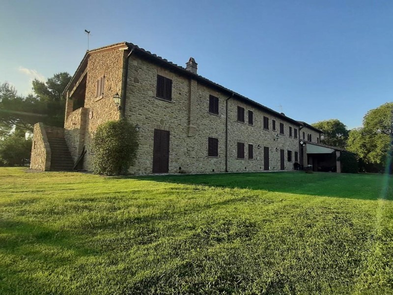 Volterra: ubicato nel Comune di Volterra, in posizione dominante circondato dalla bellissima campagna e dalle dolci colline Toscane, con vista sulla storica città Etrusca, vendesi ANTICO CASALE della superficie di 700 mq circa. Il fabbricato è circondato da un favoloso prato con piante di vario tipo e una piscina dalla quale ammirare il panorama a 360 gradi. Il fabbricato è in pietra originale delle case Toscane della zona, a forma rettangolare, è composto da un corpo unico, disposto su due livelli. E' stato finemente ristrutturato da pochi anni nel rispetto dello stile locale. Composto da n. 7 appartamenti, di cui uno adibito a casa padronale disposta su p. terreno e primo e sei unità per attività agrituristica (n.3 Trilocali al p. terreno + n. 3 Trilocali al p. primo). Tutti gli appartamenti sono in perfetto stato di manutenzione. La casa padronale è molto bella, caratterizzata da archi, travi-travicelli e mezzane, oltre a pietra faccia vista e pavimentazione in cotto - composta a piano terra da un grande salone con zona cottura a vista, della superficie di oltre 60 mq, più servizio igienico; mentre al piano superiore abbiamo ampio salone soggiorno, tre camere e bagno. La parte immobiliare di questa proprietà si trova al centro rispetto ai 110 ettari di terreno seminativo che la circondano, ideale per la coltivazione di tutti i tipi di foraggi. IDEALE PER CHI CERCA IL CONTATTO CON LA NATURA E LA STORIA. Agriturismo in vendita - 24 vani - 700 mq - Rif. 135 AGRITURISMO 7 APP. TI + 110 ha