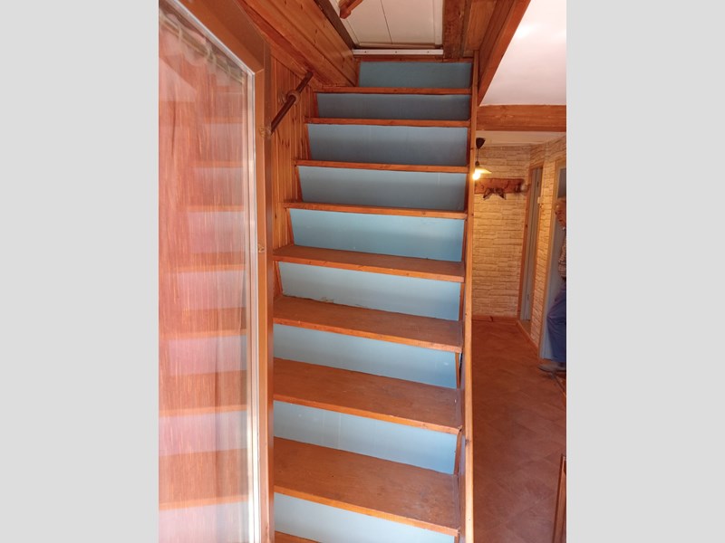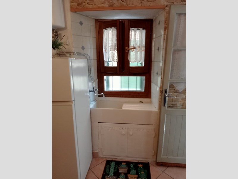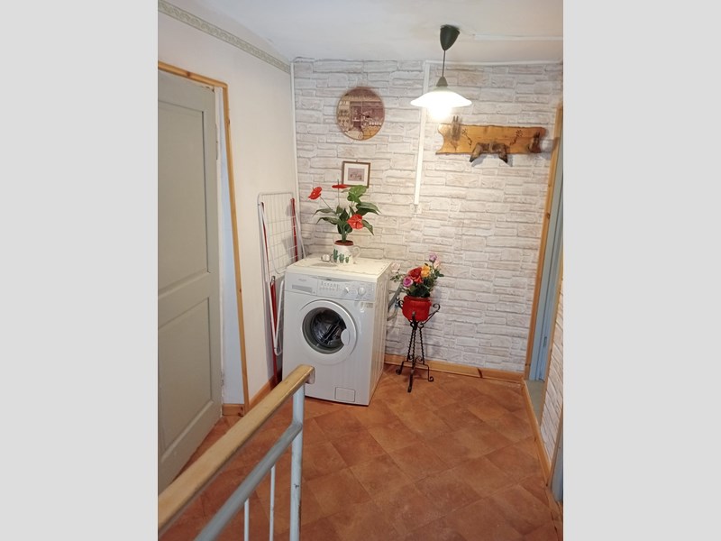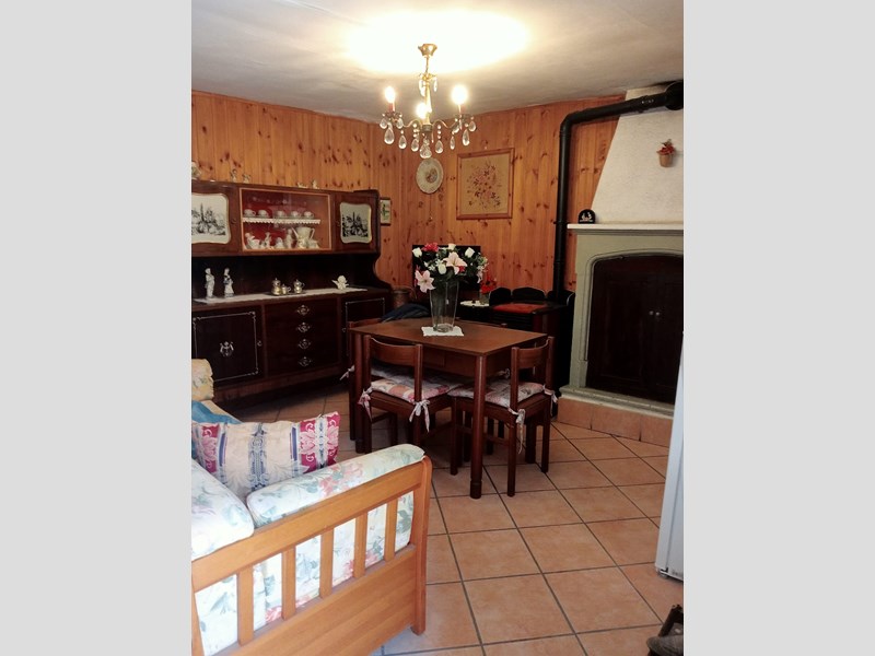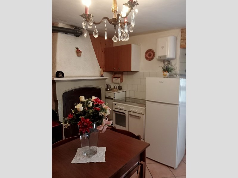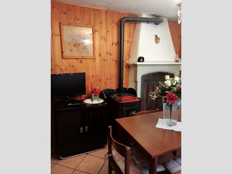 Piano terra con ingresso indipendente, disimpegno, soggiorno con cucina a vista, camino a legna, stufa a pellet funzionante e ripostiglio.