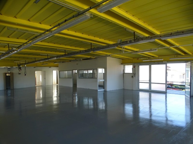 Il fabbricato è inserito all’interno di un lotto di 1.000 mq di terreno, con ampi spazi disponibili tutt’intorno, dotati anche di recinzione con cancello automatico. Attualmente il piano terra è suddiviso in due fondi da 150 mq. e 200 mq. Ogni fondo dispone di servizi ed ufficio. Il piano superiore del fabbricato è raggiungibile da una rampa esterna carrabile ed è composto da un unico grande ambiente con ufficio e servizi. I locali sono tutti molto luminosi grazie alle finestrature che corrono in alto lungo i quattro lati dell’edificio. Il capannone è completamente affittato.