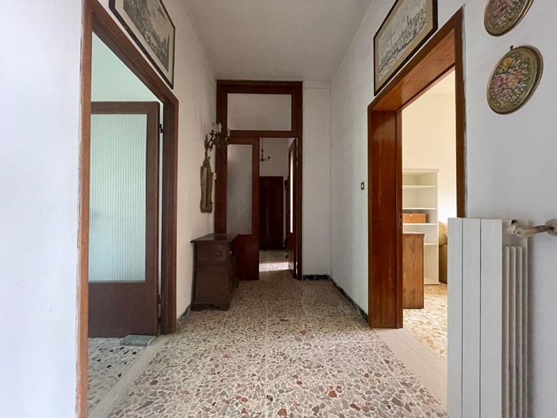 Appartamento di mq 118 circa posto al terzo e ultimo piano e composto da ingresso, corridoio, cucina abitabile con terrazza, ampio soggiorno con terrazza, tre camere, due bagni e due ripostigli. Fanno parte della proprietà un garage, una cantina e un piccolo orto. L'appartamento è molto luminoso e abitabile.