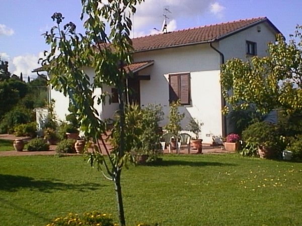Nella campagna di San Miniato, inserita in un piccolo borgo rurale a pochi chilometri dal centro storico, bella villetta in posizione collinare e panoramica, tipica degli anni '70, costituita da un piano rialzato con tre camere, bagno e soggiorno per una superficie di mq.115, grande seminterrato, aperto sulla valle, attrezzato con cucina, caminetto, bagno e lavanderia. Ampia soffitta Possibilità di ampliamento. Giardino attrezzato con forno e barbecue.