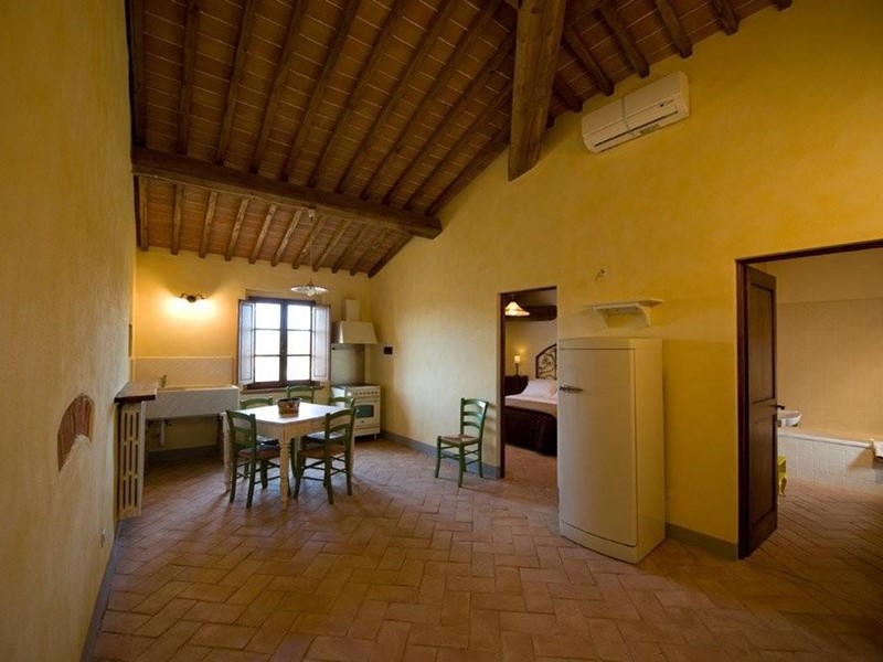 Per quanto riguarda i fabbricati sono così disposti: il fabbricato principale, di particolare pregio architettonico, il cui nucleo più antico risale all'anno 1000, è stato sapientemente restaurato ed adibito ad alloggi agrituristici che, seppure spaziosi ed indipendenti, godono di ambienti a comune quale il “salone del cervo”, un'ampia cucina rustica con grande caminetto, un luminoso soggiorno ed una caratteristica torretta belvedere distribuita su due livelli ed adibita a sala lettura; il tutto armoniosamente arredato in gusto rustico toscano; un secondo fabbricato dalla tipologia storicizzata a fienile, disposto su due piani e con ampio loggiato laterale, è attualmente adibito a locali agricoli; infine un terzo fabbricato è stato in parte recuperato a residenza ed in minima parte lasciato a destinazione di ricovero attrezzi.