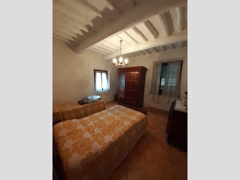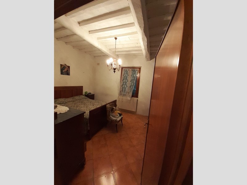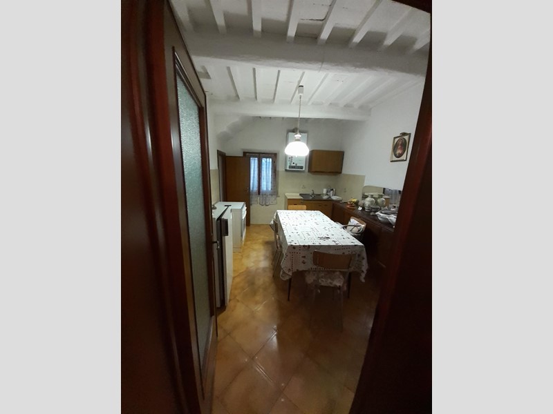 Appartamento al primo piano di un più ampio fabbricato, con ingresso e vano scale a comune, e altra stanza posta al piano terra, attualmente adibita a cucina rustica con camino, per una superficie complessiva di 90 mq. circa. L’abitazione al primo piano si compone di cucina abitabile, camera matrimoniale, camera doppia e bagno. Completa la proprietà un orto esclusivo di circa 48 mq. posto sul retro dell’edificio, raggiungibile da una corte comune.