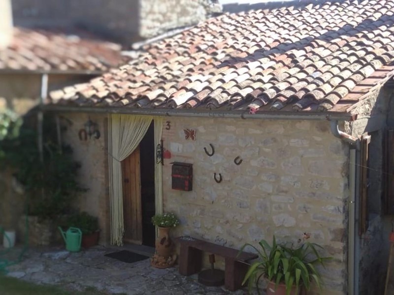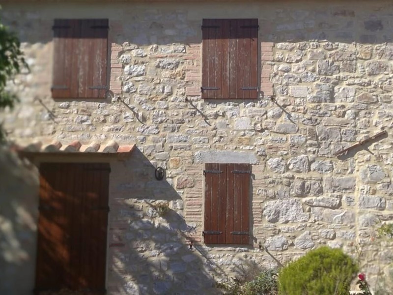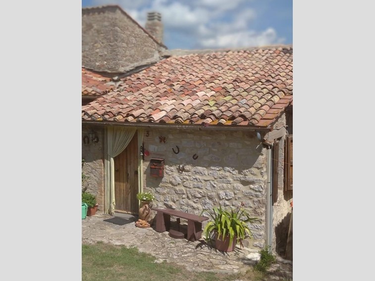 porzione di casale in pietra con ingresso indipendente con circa un ettaro di terra situata in piccolo borgo panoramico casale di 160 mq su due piani con pavimenti originale in cotto, soffitto in travi di quercia