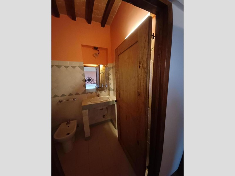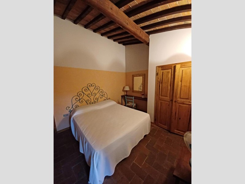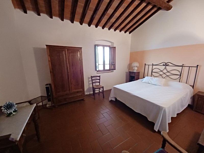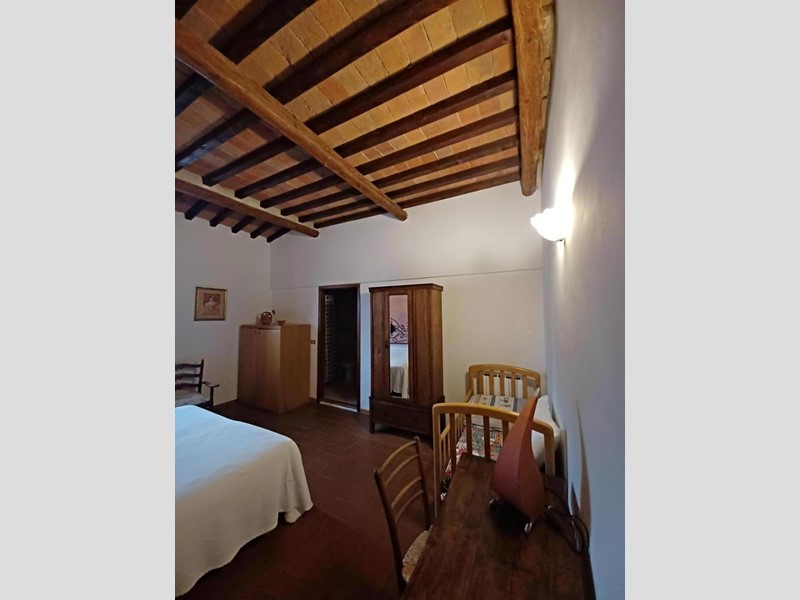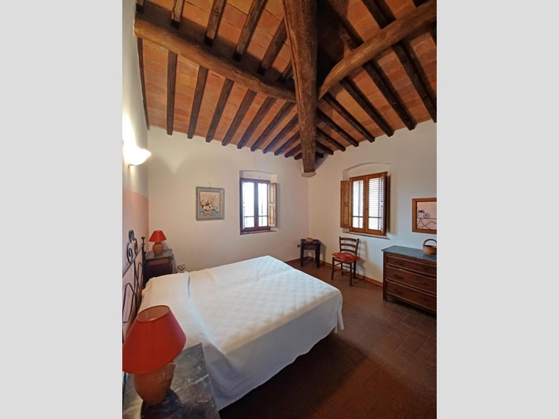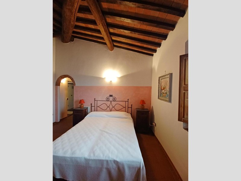 Vinci, collocata in bella posizione con vista sulla campagnia a olivi e vigneti, porzione angolare di casa colonica disposta su due livelli, caratterizzata da travi a vista, soffitti a voltine, cotto e pietra serena. Molto ben tenuta è composta a piano terra da ampia cucina, con camino a vista anche su grandissima sala con molte aperture sull'esterno, altra sala, due bagni con antibagno; al piano primo cinque camere matrimoniali ognuna con il proprio bagno. L'immobile che già attualmente è adibito a casa vacanze è molto caratteristico con facciata a pietra a vista e completo di una piscina di 60 mq, un parking con ampia possibilità di posto auto, un capanno di 20 mq. e una cantina di 30 mq. Molto bella la terrazza prospiciente la piscina con vista sulla campagnia circostante.