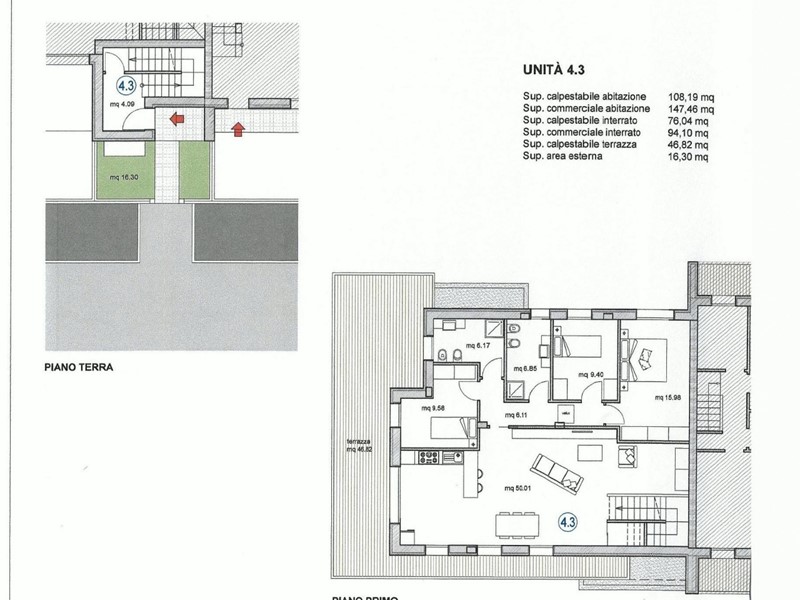 L'alloggio è composto da zona giorno di 44mq caratterizzata da un'ampia vetrata a tutta parete che da accesso al terrazzone di ben 48mq ideale per mangiare fuori o per gli irrinunciabili momenti di relax, vicino all'ingresso trovano posto un ripostiglio ed un bagno finestrato. La zona notte, classica e vivibile dispone di tre camere ed un secondo servizio. Nell'interrato che si raggiunge comodamente con la scala interna troviamo un interrato ampio con ripostiglio/ lavanderia di 18mq e doppio garage ... possibilità di scelte delle finiture