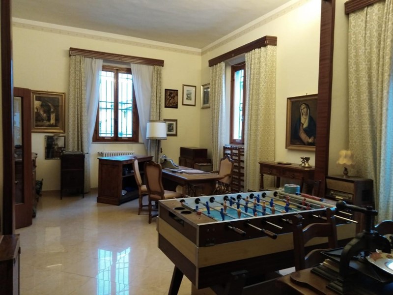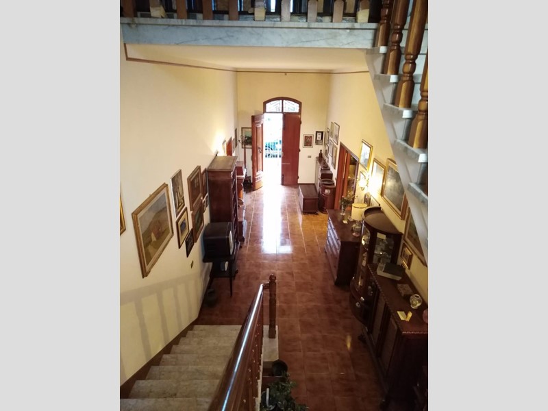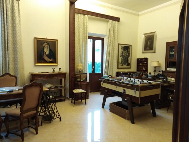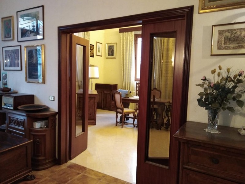In zona residenziale, vicinissima al centro cittadino, vendesi elegante villetta, porzione di bifamiliare, libera su tre lati con giardino circostante e altro terreno adiacente, il tutto completamente recintato e con accessi pedonale e carraio. La villetta si sviluppa su due piani fuori terra di circa 160 mq. ciascuno, oltre a soffitta e piccola cantina. Al piano terra: androne con scala per raggiungere il piano superiore, vasto salone di quasi 40 mq., altro vano, garage suddiviso in due locali. Al primo piano: sala pranzo con cucinotto, soggiorno, disimpegno centrale, salottino con balcone, due camere da letto matrimoniali (una della quali dotata bagno proprio), bagno principale e ripostiglio. Il giardino ha una superficie di 290 mq. circa mentre il terreno, in parte alberato, è di circa 430 mq.