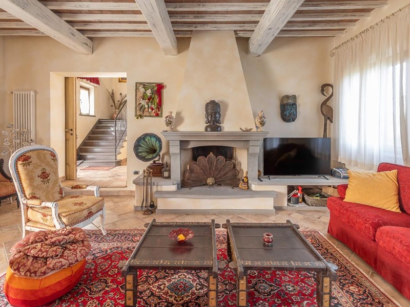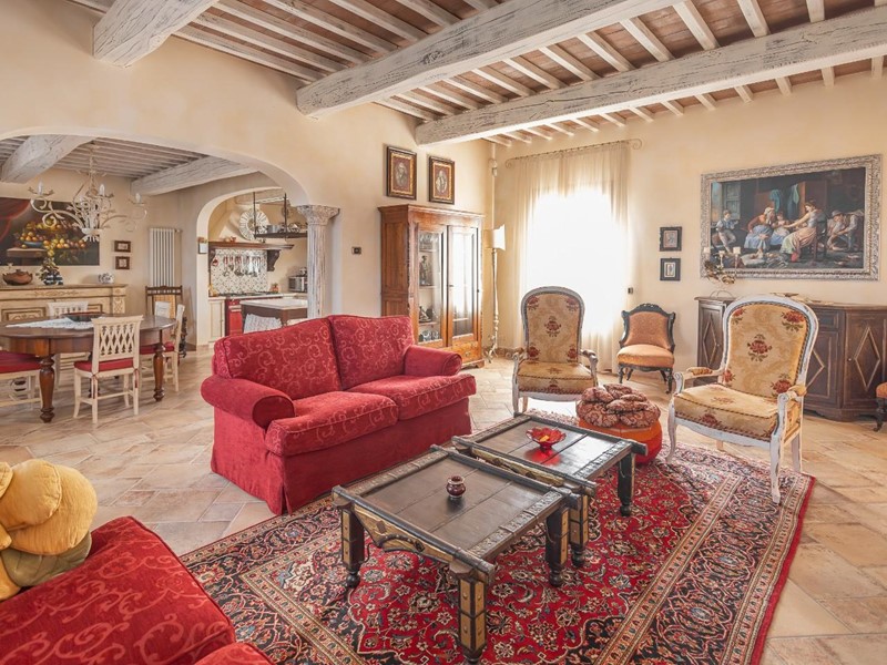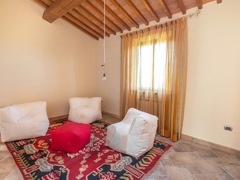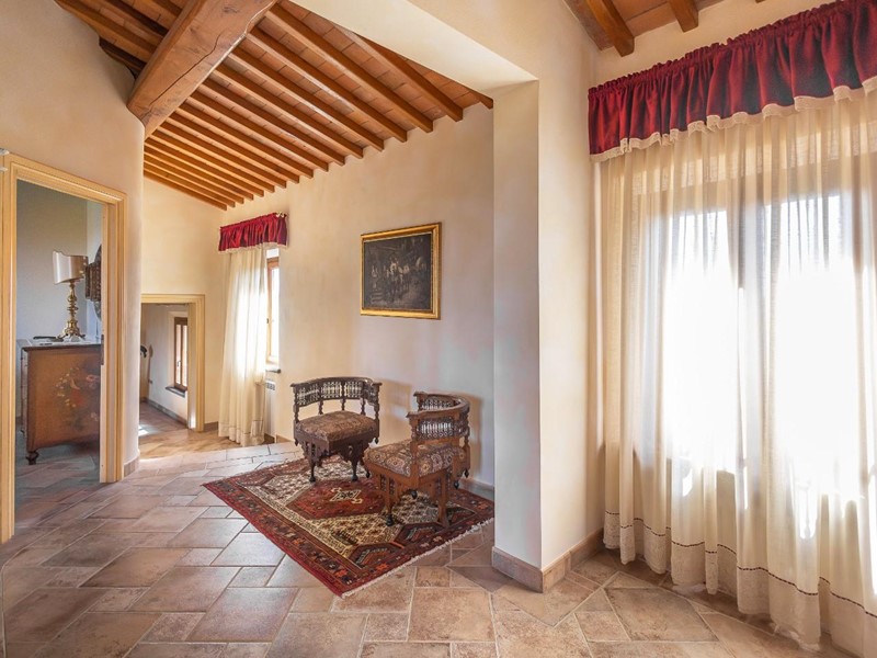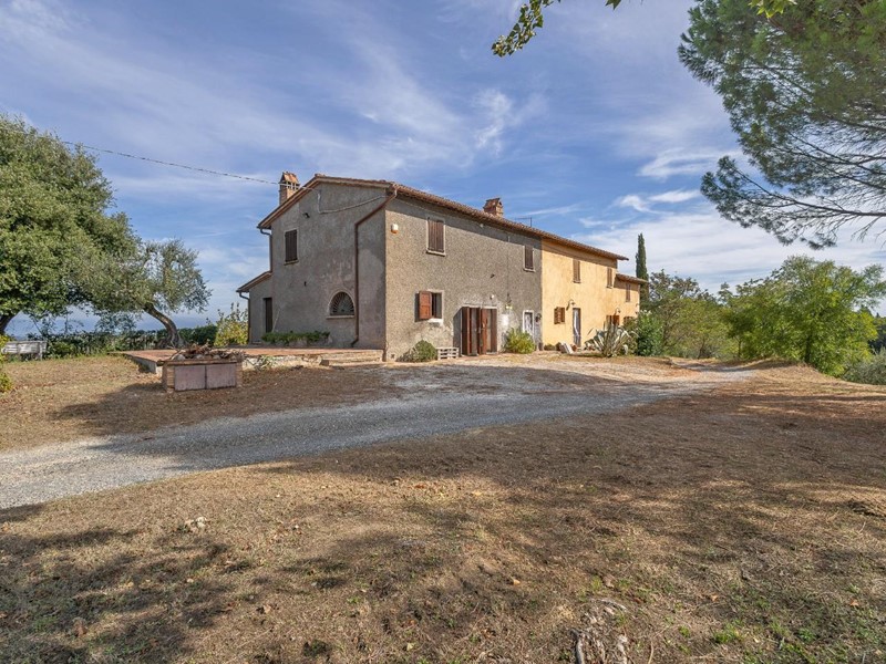Tuffata in una proprietà di circa 5 ettari, incastonata in un dolce e poetico paesaggio, questa casa colonica si staglia maestosa, come a sancire la sua supremazia sugli altri.