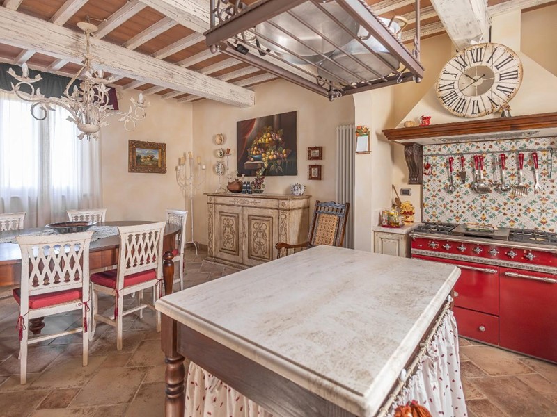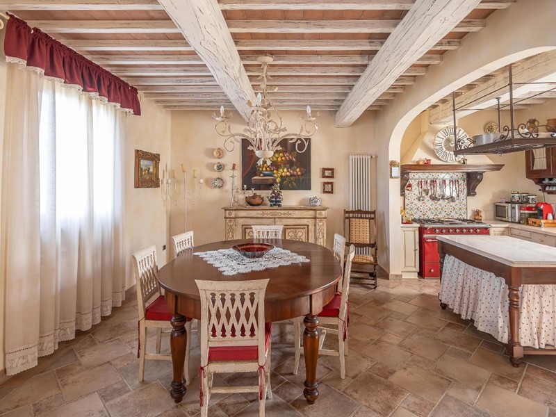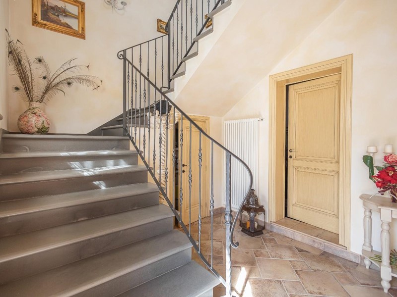 La porzione di destra, distribuita anch’essa su due livelli, è stata elegantemente ristrutturata, divenendo un ambiente molto raffinato. L’ingresso conduce a destra, dove un grande salone con camino, conduce alla sala da pranzo e alla cucina: un open space, schermato da alcune strutture che ne definiscono meglio le destinazioni, ma che gode dell’armonia data dalla fusione di questi spazi. Un bagno è a servizio della zona giorno. Una signorile scala conduce al piano primo, dove si trovano tre camere da letto di cui una con un elitario camino.