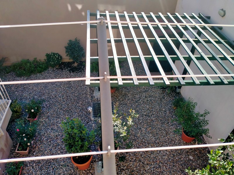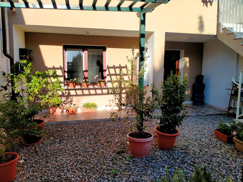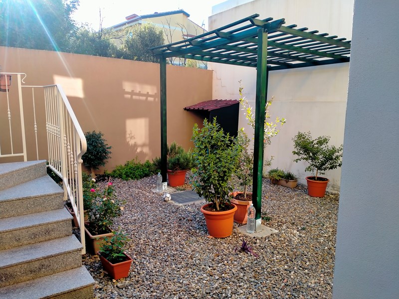 Giardino anteriore con inferriata in ferro battuto e in quello posteriore con presenza di una pergola.