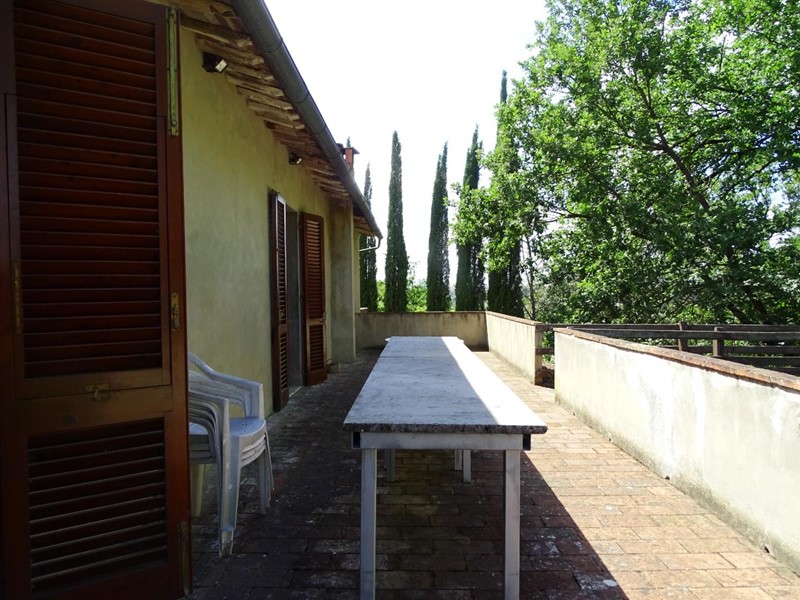 Sulla sommità di un colle, in posizione dominante e panoramica, facilmente raggiungibile con strada asfaltata, vendesi proprietà costituita da una grande casa colonica con fienile e quasi 8 ettari di terreno, esteso su entrambi i versanti della collina, per metà coltivato a vigneto (in parte destinato alla produzione di Chianti DOCG).