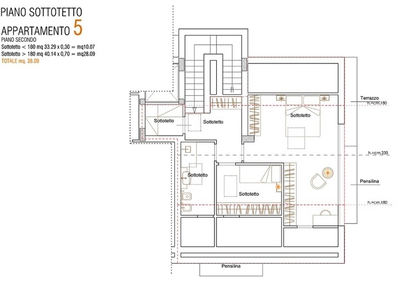 Riccione parco : appartamento su due livelli , al secondo piano servito da ascensore; l'abitazione è composta al piano secondo da ingresso su soggiorno e cucina a vista , un bagno e una camera con cabina armadio, il balcone è in parte loggiato; al piano terzo sottotetto troviamo il disimpegno , un bagno con box doccia , una camera matrimoniale e una camera singola entrambe affacciate su bel balcone esposto a sud est. L'appartamento è inserito in contesto di sei unità abitative e sorge in zona residenziale comoda ai bagni 100 /104 . Il prezzo è soggetto ad iva . Il garage, doppio , è compreso nel prezzo , si acquista da impresa , i pagamenti sono garantiti da fidejussione bancaria , il capitolato è disponibile in ufficio . Sono possibili le detrazioni con sisma bonus acquisti. Per contatti diretti Raffaella rif 7130.
