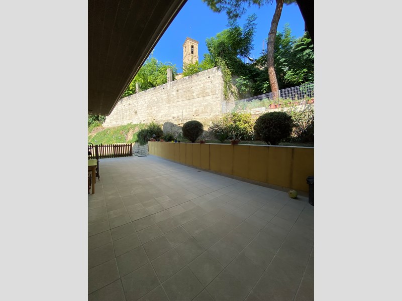 Polverigi in zona residenziale e vicinissima al centro, vendesi appartamento di circa 100mq con ingresso indipendente, libero su 3 lati, circondato da corte pavimentata ed ampio giardino munito d'impianto d'illuminazione ed irrigazione per un totale di circa 400mq. Sito al PT rialzato, accessibile da comoda scalinata, l'immobile si presenta molto luminoso con grande open-space composta da salone e cucina a vista con accesso diretto alla corte pavimentata da entrambi i lati. Dal soggiorno si accede alla zona notte composta da camera matrimoniale e 2 camerette servite da 2 bagni (1 con vasca e l'altro con box-doccia) entrambi finestrati. Completa la soluzione un garage di proprietà di 25mq e comoda cantina. Tutto l' appartamento dispone di riscaldamento a pavimento con caldaia esterna a condensazione, cappotto esterno, zanzariere e grate di sicurezza antintrusione a sportello.