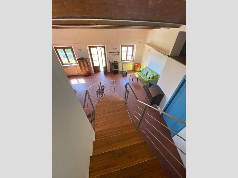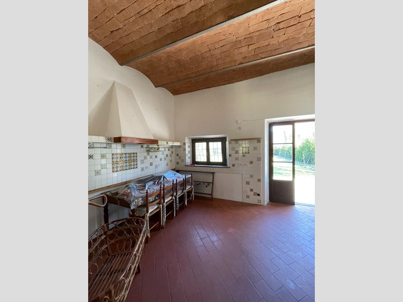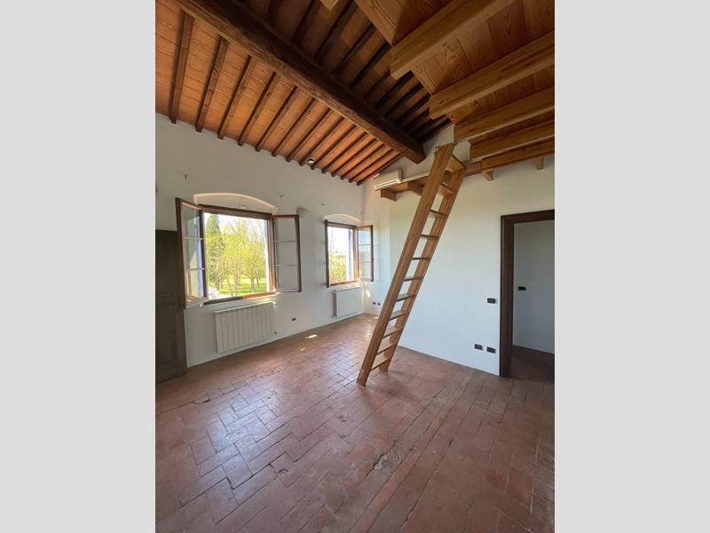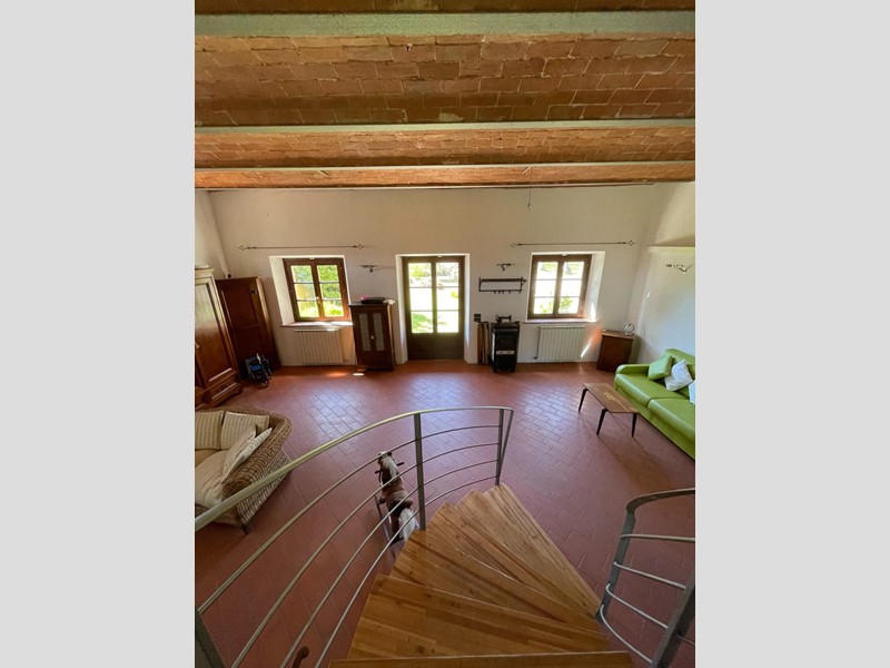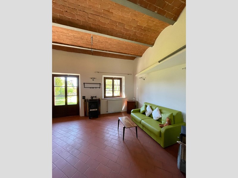 Ghezzano - Fuori dall'affollamento urbanistico, inserito nel verde della campagna pisana, suggestivo cascinale caratteristico toscano, ristrutturato nel rispetto degli originali dall'attuale proprietaria, circondato da ca. 1000 mq di giardino. Al piano terra la parte giorno è aperta sulla sala con camino in pietra serena, zona studio, zona pranzo e cucina conviviale, servizio. Volterrane sabbiate caratterizzano i soffitti della zona giorno. Un'armonica scala conduce alla zona notte con 3 camere, di cui 2 con doppio volume, e ampio servizio. Completa la proprietà forno contadino tradizionale. Rich. euro 490.000 tratt.