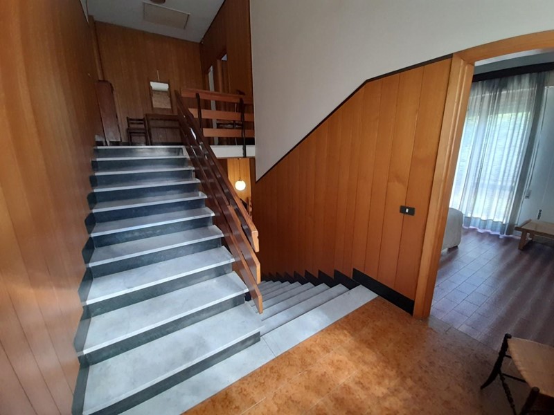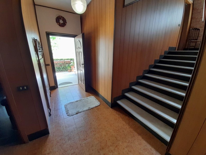 L'immobile è cosi composto: in Piano Rialzato da ampio ingresso, grande soggiorno con camino, sala da pranzo, cucina con dispensa, studio e bagno con doccia e finestra. Dalla zona d’ingresso parte un ampia scala in marmo bianco di Carrara che collega il Piano Rialzato con il Piano Superiore e la zona Semi-interrata dove si trovano un ampio garage di 40 mq, cantina, taverna con portico esterno oltre un vano lavanderia e un locale caldaie.