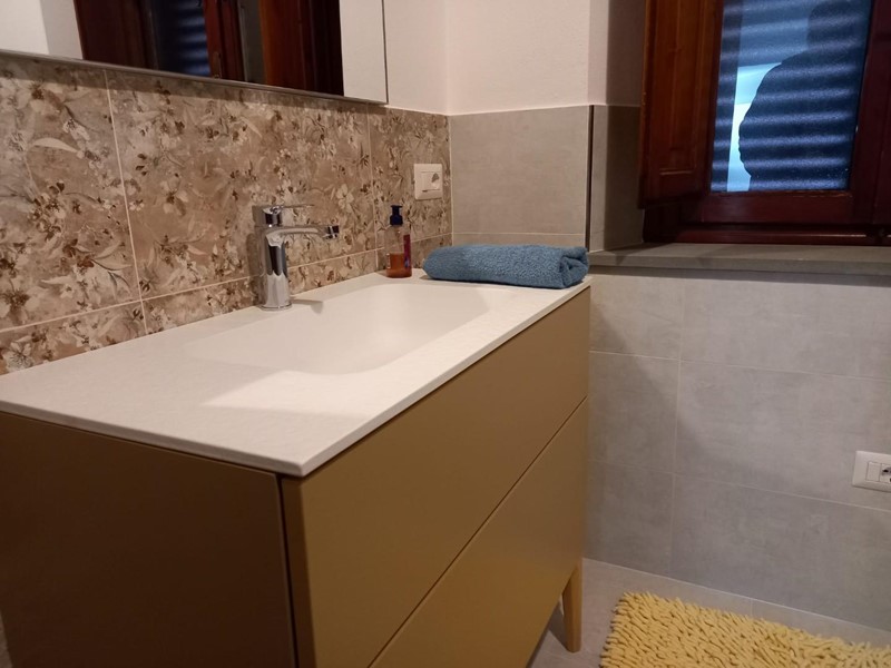 La seconda abitazione è composta al piano terra da doppio ingresso, soggiorno, ampia cucina/pranzo con caminetto e ripostiglio; al piano primo disimpegno, due camere matrimoniali e bagno con vasca; al secondo piano due camere matrimoniali mansardate e bagnetto al grezzo con doccia.