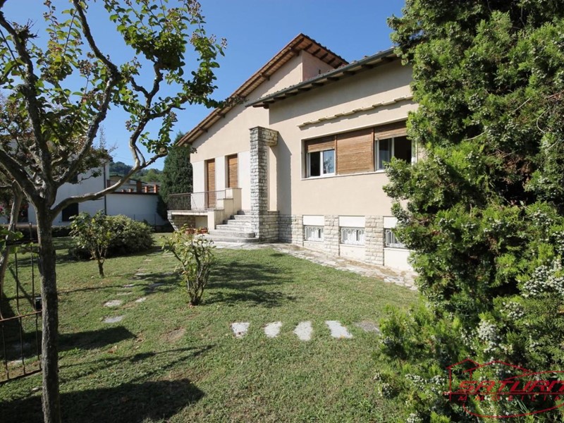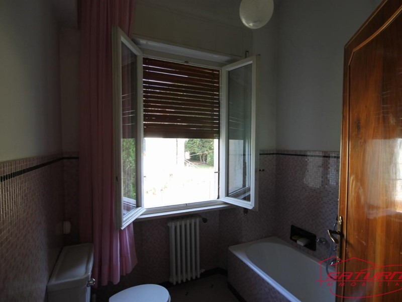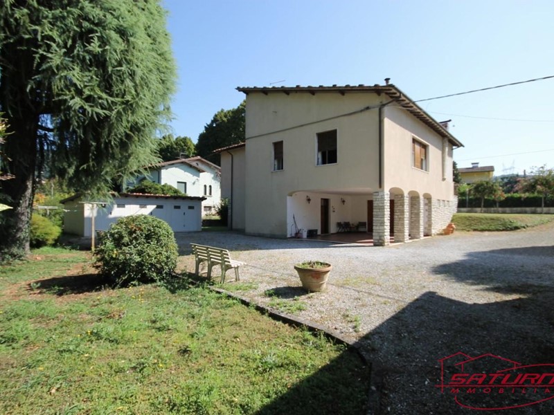 PONTE A MORIANO Distante circa 7 km dal centro storico villa singola di metà anni 50 di complessivi 230 mq, sviluppata principalmente su di un unico livello composta da: ingresso, ampio soggiorno con sala pranzo, cucina abitabile, disimpegno, camera matrimoniale, due camere medie, bagno finestrato e balcone al piano rialzato. Due locali uso cantina, quattro locali accessori, ripostiglio, wc e porticato di 20 mq al piano terra. Corredano la proprietà giardino su quattro lati completamente recintato di circa 1000 mq di terreno su cui insistono tre garage di 12 mq ciascuno e ampio annesso esterno.
