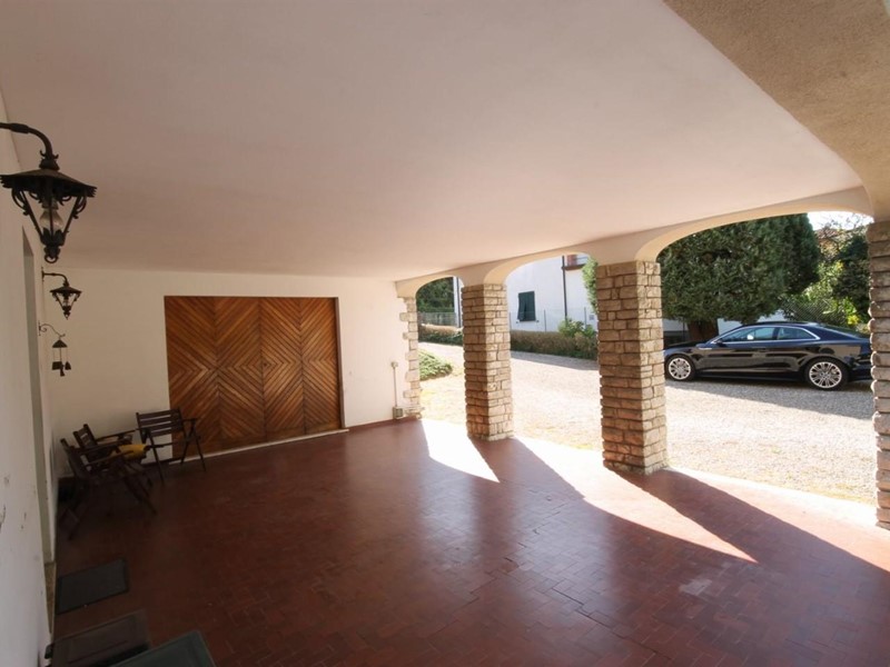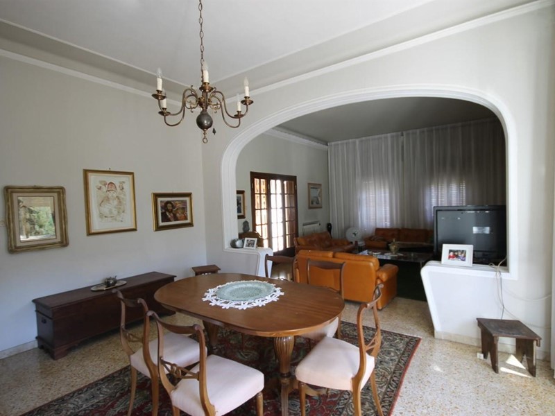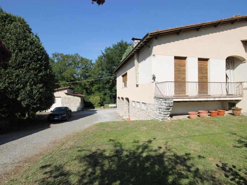 PONTE A MORIANO Distante circa 7 km dal centro storico villa singola di metà anni 50 di complessivi 230 mq, sviluppata principalmente su di un unico livello composta da: ingresso, ampio soggiorno con sala pranzo, cucina abitabile, disimpegno, camera matrimoniale, due camere medie, bagno finestrato e balcone al piano rialzato. Due locali uso cantina, quattro locali accessori, ripostiglio, wc e porticato di 20 mq al piano terra. Corredano la proprietà giardino su quattro lati completamente recintato di circa 1000 mq di terreno su cui insistono tre garage di 12 mq ciascuno e ampio annesso esterno.