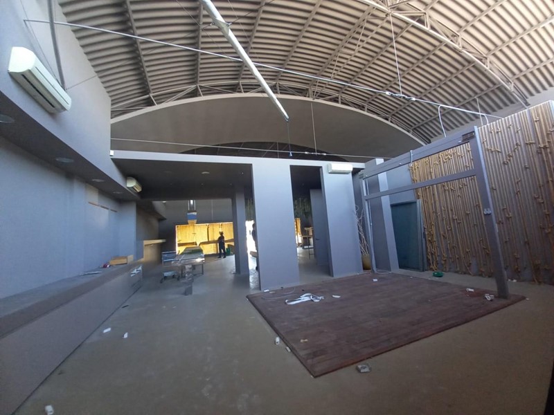 Grande vetrina sul fronte della strada principale e resede per parcheggio privato . all' interno attualmente open space con 1 solo spazio ufficio realizzato con cartongesso ,1 bagno, resede sul retro con accesso solo dall'interno del capannone,