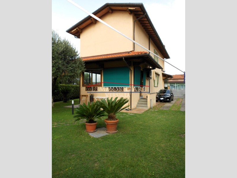 UN CONNUBIO IDEALE: ELEGANTE SOLUZIONE ABITATIVA E POSIZIONE STRATEGICA!!! A Seravezza, nella verdeggiante e tranquilla località POZZI, a soli 5 Km dalle spiagge di Forte dei Marmi e a 3 Km da Pietrasanta, immersa tra ulivi secolari, proponiamo INCANTEVOLE VILLA SINGOLA SU TRE LIVELLI DI RECENTE COSTRUZIONE! L'immobile, in zona comoda a tutti i servizi, si compone, al P.T. Rialzato, di ingresso su grande e luminoso soggiorno, deliziosa cucina abitabile impreziosita da lavello realizzato interamente in marmo e servita da SPLENDIDA VERANDA COPERTA, organizzata con comodo cucinotto all'aperto e dotata di ampie vetrate a taglio termico e di accesso diretto sul giardino, un bagno di servizio con presenza di piatto doccia; al P. Primo, cui si accede tramite elegante scala, incontriamo la camera padronale con bagno privato corredato di doccia, altra camera matrimoniale, una camera singola, un vano studio eventualmente adibibile ad ulteriore cameretta ed un bagno completo di doccia a servizio della zona notte; al P. Seminterrato TAVERNA OPEN SPACE CON CAMINO, locale tecnico/lavanderia e bagno finestrato con doccia. Note in evidenza: Certificazione di idoneità statica, videocitofono, impianto di allarme volumetrico e perimetrale (5 linee), impianto fotovoltaico 3 Kw per produzione di energia elettrica, impianto solare termico 200 lt e presenza di pompa di calore Rotex, impianto batterie di accumulo 12 W, persiane e finestre in legno con vetrocamera, zanzariere ed inferriate, pregiato parquet nella zona notte, presenza di un termostato a piano per la diversa impostazione della temperatura, illuminazione di emergenza, impianto di irrigazione. Completa la proprietà circa 700 MQ DI GIARDINO PRIVATO PIANTUMATO con vialetto interno per parcheggio auto, cui si accede tramite cancello elettrocomandato. Per maggiori info e/o per fissare un appuntamento di visita, contatta Sabrina al 339/6188844.