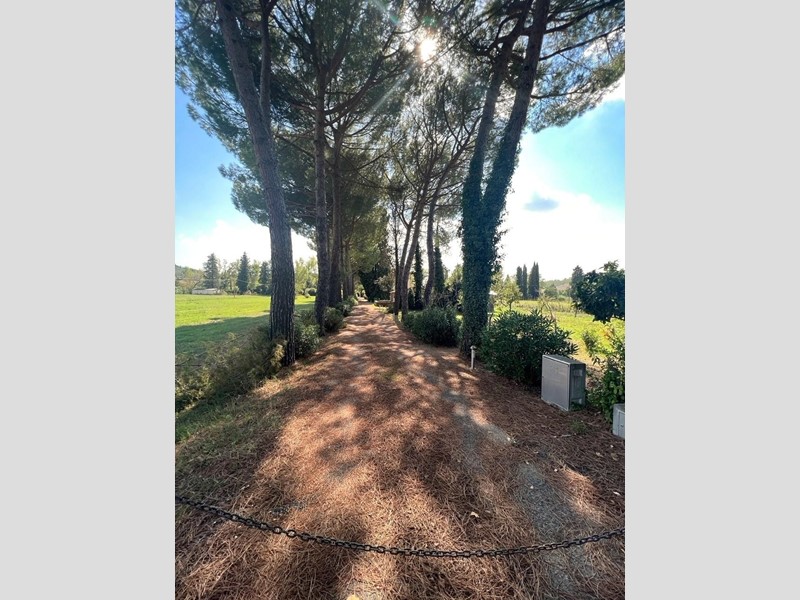 In posizione pianeggiante la villa è composta da tre corpi fabbrica posizionata al centro di un terreno di circa 3,5 ettari. Alla villa si accede grazie ad una strada privata ed alberata.