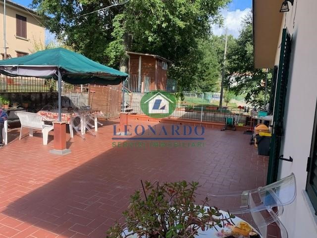Panicagliora - Marliana, proponiamo una casa libera su quattro lati per complessivi 170mq. All'abitazione si accede da un bellissimo terrazzo di 90mq ben pavimentato ed ampiamente sfruttabile. Internamente è composto da ampio soggiorno-pranzo con camino e forno, angolo cottura, piccolo bagno di sevizio al piano. Mediante scale in legno si accede al piano inferiore composto da tre camere matrimoniale, ben disimpegnate, un bagno,. La proprietà è completata dal garage e giardino misto bosco per complessivi mq 1180. Richiesta trattabile.