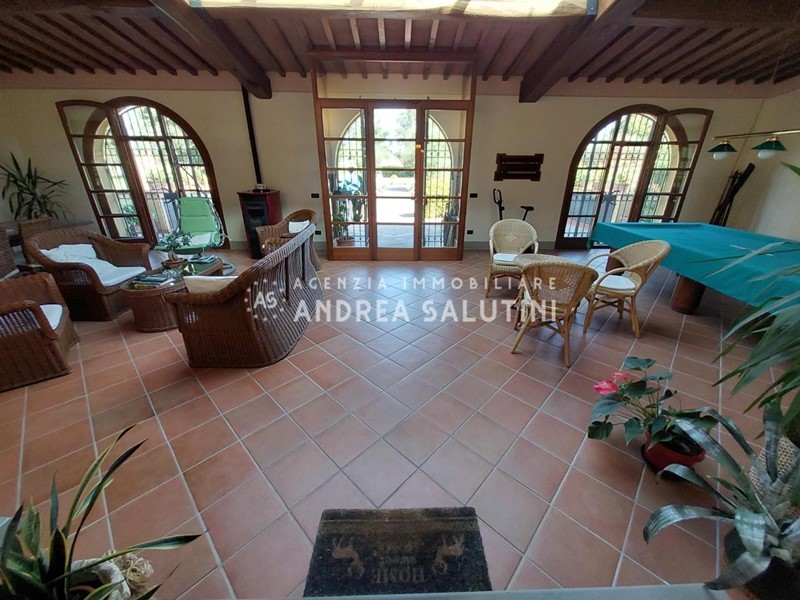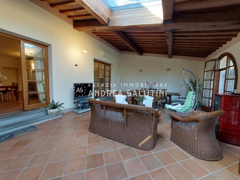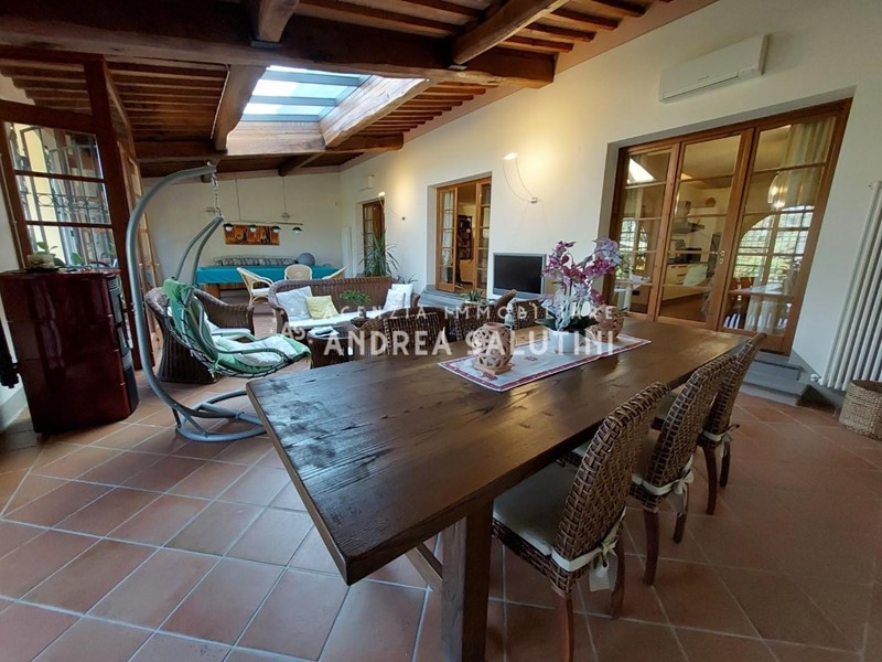 Pontedera - Vendesi terratetto magnificamente ristrutturato in stile rustico con finiture di pregio. L'immobile dispone di un giardino di circa 2000 mq con un'ampia casetta e in legno e 3 posti auto coperti. Internamente la casa che si sviluppa per un totale di 330 mq si compone in: ingresso in un' ampia veranda molto luminosa grazie alle vetrage che danno sul giardino e un grande lucernario. Proseguendo al piano terra si sviluppa la zona giorno con un' ampio salone con camino, grande cucina, bagno di servizio e due comodi ripostigli. Salendo al piano primo raggiungiamo la zona notte dove troviamo un' ampio disimpegno d' accesso che da su 3 camere matrimoniali di cui una padronale con bagno privato, sala da bagno con vasca idromassaggio e ulteriore ripostiglio. Salendo ulteriormente al piano sottotetto troviamo una piccola mansarda in cui è stata ricavata una zona studio. Immobile ottimamente mantenuto e pronto per essere abitato senza nercessitare di alcun tipo di ristrutturazione. L'immobile è situiato in una delle migliori zone residenziali di Pontedera dove possiamo trovare tranquillità e allo stesso tempo vicinanza a tutti i principali servizi. Classe energetica: B - Rif. 1656-SL