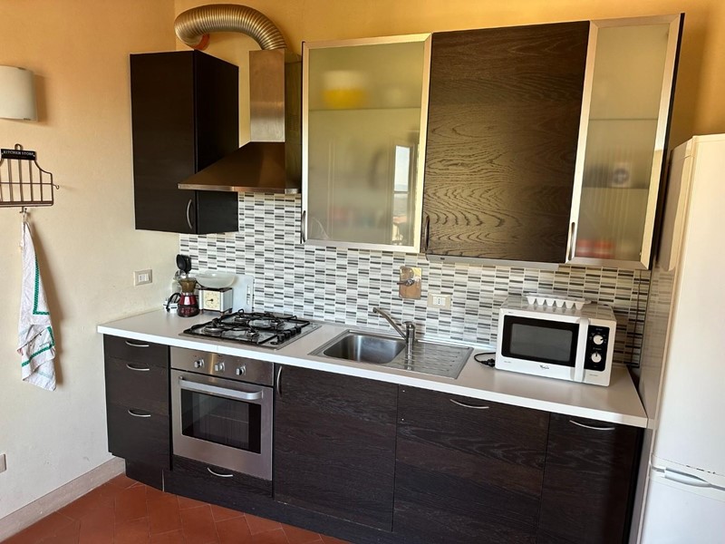 Calci - Frazione Castelmaggiore: in splendida posizione collinare proponiamo in affitto luminoso appartamento di 100 mq posto al piano 5° con ascensore. L'immobile fa parte di una signorile ristrutturazione condominiale. Nella zona giorno, impreziosita da 4 finestre che rendono l'ambiente luminoso e offrono una incantevole visuale sui monti, troviamo un ampio soggiorno, cucina abitabile, bagno con finestra e doccia. La zona notte è formata da una camera matrimoniale, camera singola e bagno con vasca. Le rifiniture sono moderne e creano un gradevole contrasto con soffitti a travi. Completa la proprietà un garage di mq 45 il cui accesso avviene tramite un cancello automatico, nel quale si possono parcheggiare comodamente due auto di generose dimensioni. Per referenziati. Classe energetica: F - Rif. 580