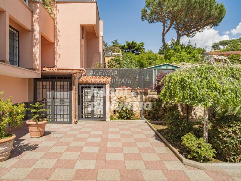 Monte Porzio Catone in zona "Cappellette" adiacente Via Frascati e precisamente in Via Silio Italico Villa a schiera su due livelli di ca 230 mq composta al piano terra da: Salone, ampia cucina abitabile, tre camere, doppi servizi e giardino mattonato su due lati per ca 250 mq, nella parte anteriore al salone troviamo una zona attrezzata con pergotenda e barbecue; al piano seminterrato zona hobby con camino bagno e zona lavanderia. L'immobile dispone di una splendida veranda di mq 50 e una terrazza di mq 75 panoramica al piano superiore accessibile con scala esterna. Vari posti auto esterni - Ottimo stato.