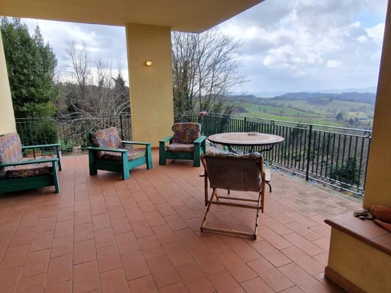 Tale soluzione divisa già in 2 appartamenti si dispone su più livelli, con stupenda vista collinare! Con una metratura  commerciale di circa 400 mq ( dei quali circa 140 mq a piano ) e 6740 mq di terreno complessivo, la villa può essere facilmente divisibile in più unità abitative.
