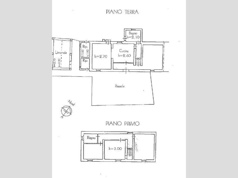 piano primo: due camere matrimoniali, disimpegno, cameretta e bagno.