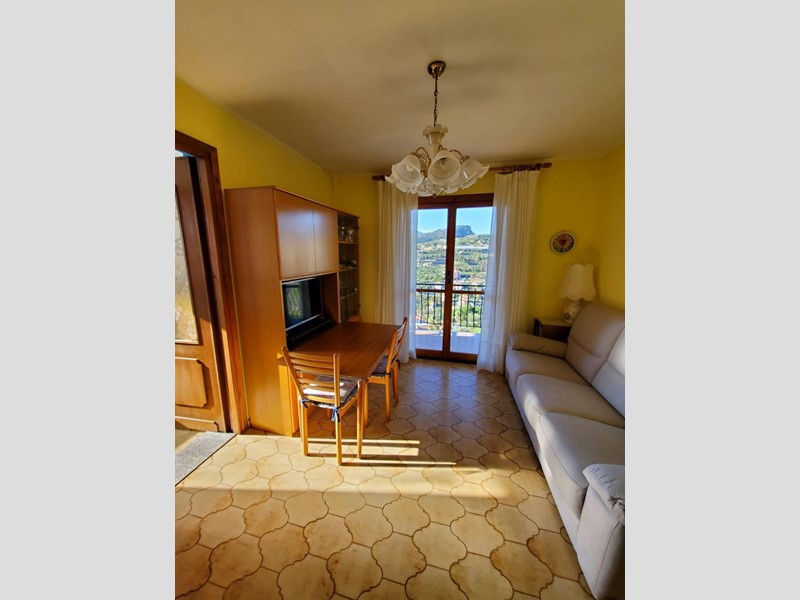 Al piano primo abitazione composta da ingresso , sala con balcone vista aperta e mare , cucina semi abitabile ,due ampie camere da letto di cui una con terrazzo , bagno .