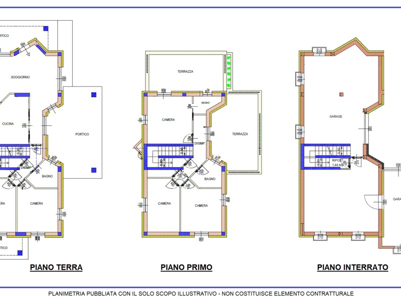 Ingresso, ampio soggiorno, cucina abitabile (14 mq), cinque camere, quattro bagni, grande taverna, lavanderia, cantina e triplo garage. Ampio porticato (28 mq.) e grande terrazza abitabile (24 mq.). Giardino privato (405 mq). L'immobile è molto luminoso ed è libero su quattro lati.