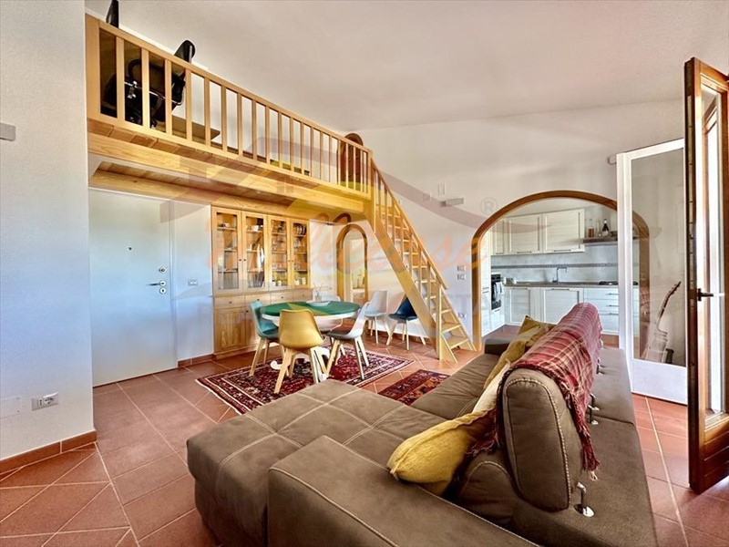 l'immobile e' composto da ingresso su ampio salone con scale a vista con uno studio/stanzino al piano superiore, cucina, bagno,doppio servizio n. 2 camere da letto.