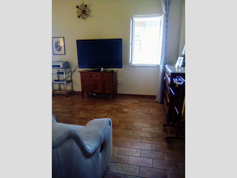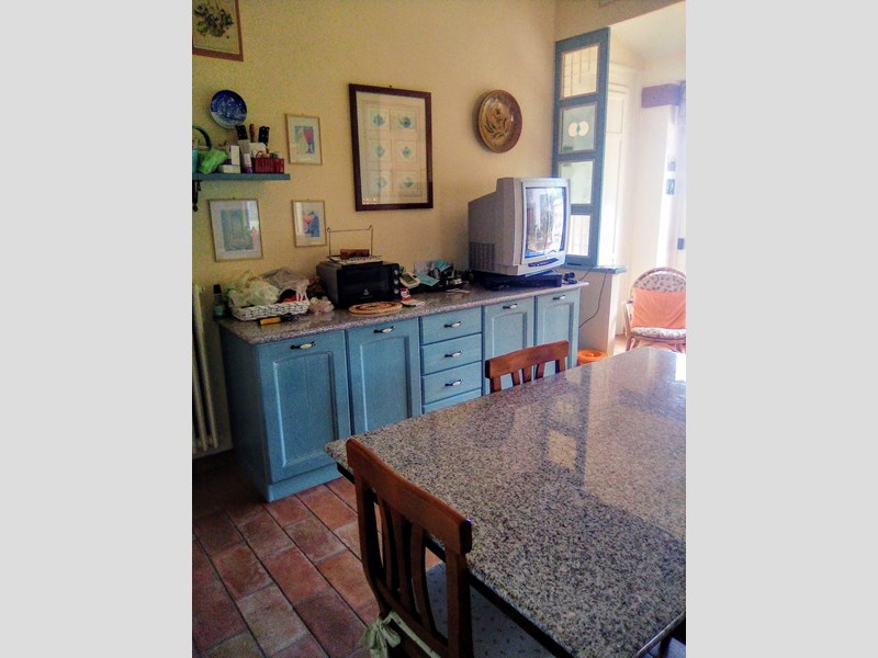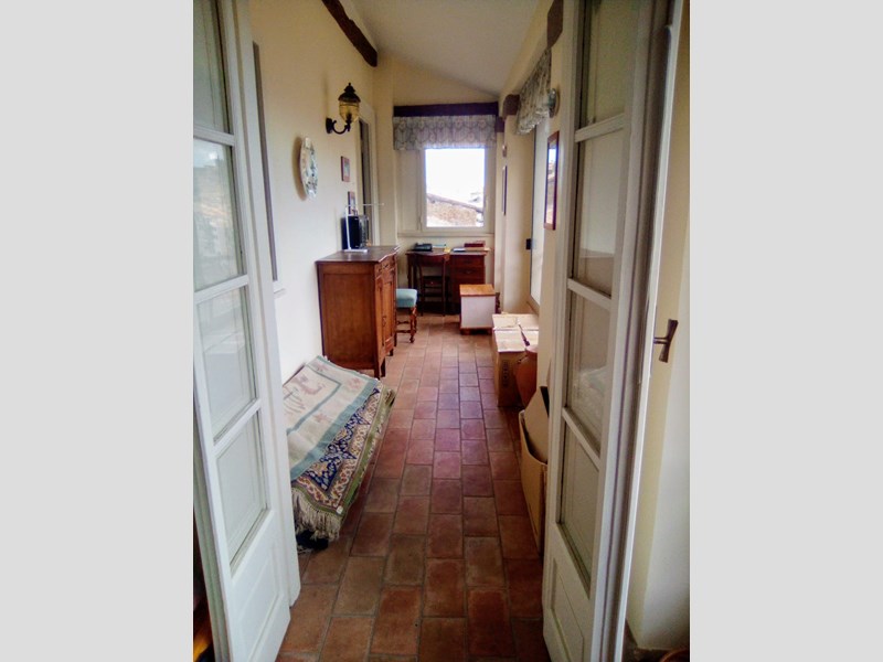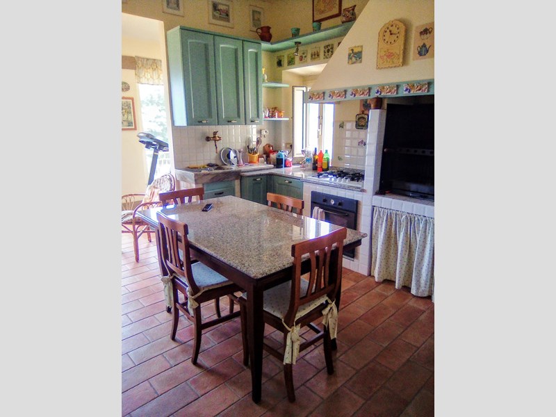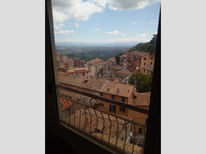 Dall' ingresso si accede ad un ampia cucina in muratura unica nel suo genere in quanto provvista di loggia a vetri che occupa l'intero lato dell'immobile con vista panoramica sui monti cimini e sul paese dalla quale ammirare splendidi tramonti.