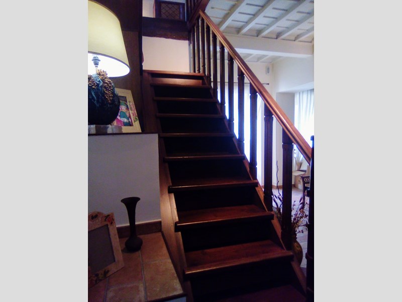 La casa si sviluppa su due piani collegati tra loro internamente da una magnifica scala artigianale di noce massello