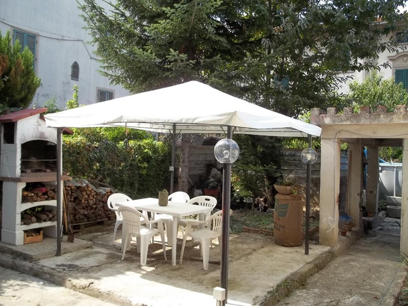 Rif. 868 - In zona centralissima di Santa Croce sull'Arno, villetta terratetto stile liberty, anno costruzione 1924, posta su una schiera di case d'epoca libera su due lati. Anteriormente troviamo un ingresso da resede con accesso all'abitazione mediante grande portone o ad un piccolo fondo uso negozio/ufficio. L'abitazione si sviluppa su tre piani ed attualmente è composta al piano terra da ingresso ampio, cucina e vano uso camera/soggiorno oltre bagno, da lì si accede al giardino tergale di circa 200mq. molto riservato, dove vi sono dei ripostigli in muratura condonati. Da bellissime scale interne si accede al piano primo dove troviamo quattro vani di cui uno attualmente adibito a cucina e bagno oltre due bei terrazzi. Mediante continuazione della scala si arriva alla soffitta che è molto ampia e tutta praticabile. L'immobile si presta particolarmente per una ristrutturazione in stile o per chi ha bisogno di grandi spazi oltre ad un ufficio lato strada tipo studio medico o altro, possibile anche ipotizzare un uso tipo affittacamere o locazione turistica.