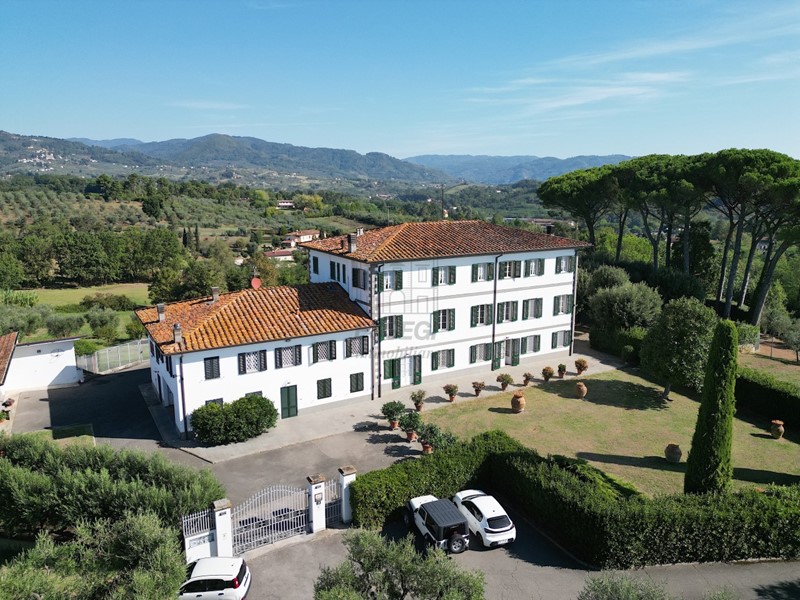 IA03727 - IMPORTANTE VILLA PADRONALE - in ottime condizioni. Ubicata in una zona collinare di facile accesso a 10 km dalle mura di Lucca ed a 5 da una uscita casello A1,questa villa è il risultato della completa ristrutturazioni negli anni 70 del secolo scorso di una villa padronale ottocentesca. La posizione è ottima in quanto è facilmente raggiungibile e gode di una vista panoramica sulle colline circostanti e in lontananza gode della vista della Città di Lucca. L'intervento integrale ha modificato l'assetto interno formando nella parte principale al piano terreno zone di servizio al giardino ed ai piani superiori 2° e 3° due appartamenti di circa mq.200 ciascuno. La parte colonica adesa al principale è rimasta in parte destinata per le attività agricole mentre al piano terra primo è stato realizzato un altro appartamento come dependance di circa mq.230. Complessivamente abbiamo nel fabbricato principale 12 camere da letto e 7 bagni oltre a saloni,cucine e disimpegni per un totale di mq.900 abitabili..Un altro edificio staccato dal principale ha funzione di servizio alla proprietà. La villa si presenta in perfette condizioni di manutenzione sia interne che esterne,subito abitabile, è completamente recintata con 4.000 mq a destinazione giardino e esternamente ha circa 3,5 ettari di terreno vocato a oliveto e vite in produzione.Richiesti € 2.200.000.
