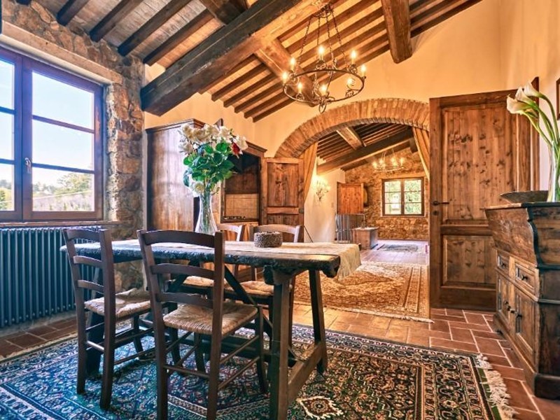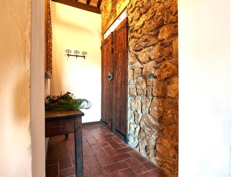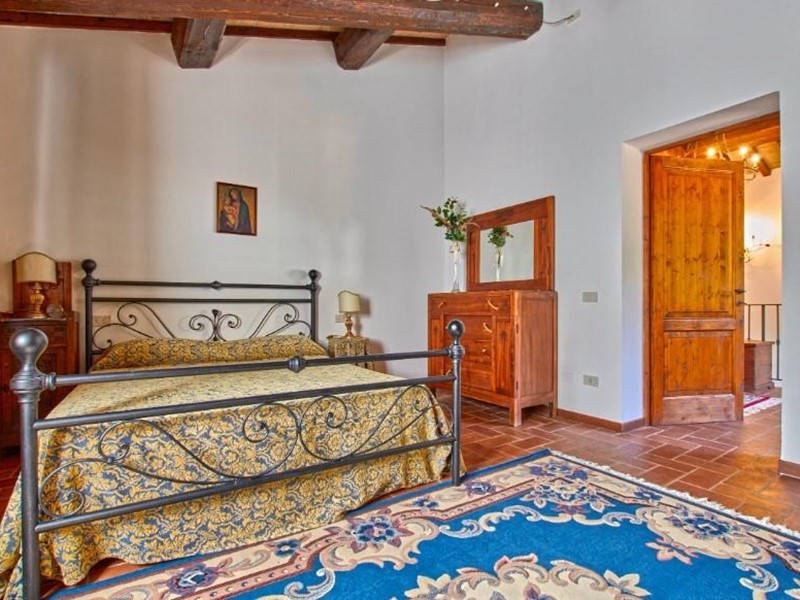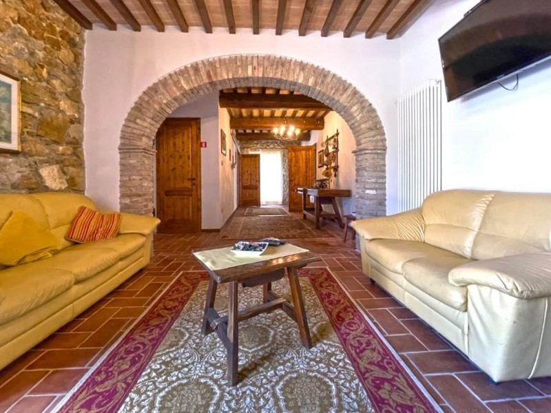 La villa si trova al centro di una tenuta privata, esclusiva e riservata. Questo grande casale in pietra offre interni molto belli e affascinanti e dispone di mobili di antiquariato di grande pregio e valore, pavimenti in cotto, pareti in pietra e soffitti con travi in legno. E' stata concepita come unica unità immobiliare di circa 400 mq che all'occorrenza e in base alla esigenze del cliente, si può suddividere in tre appartamenti tra loro autonomi ed indipendenti. Si sviluppa su due piani ed offre incantevoli spazi esterni, ideali per pranzi e cene all'aperto. L'intera villa è stata perfettamente restaurata da pochi anni e dispone di sette camere matrimoniali con cinque bagni e ampi saloni sviluppandosi su due livelli. Il piano terra è composto dalla zona pranzo con cucina tipica toscana caratterizzata da un bellissimo forno a fuoco aperto. La cucina si collega attraverso un caratteristico arco in pietra alla sala da pranzo, da qui si accede alla panoramica veranda coperta dove poter trascorrere momenti di assoluto relax. Dalla sala da pranzo un disimpegno accede a due camere matrimoniali con bagno in comune con doccia. Il soggiorno ha accesso diretto al giardino. Sullo stesso piano due camere matrimoniali ognuna con bagno privato con doccia. Dal soggiorno una scala sale al primo piano: una zona salotto completamente arredata con vista mozzafiato, una camera matrimoniale con bagno privato con doccia, due camere matrimoniali con bagno in comune con doccia.