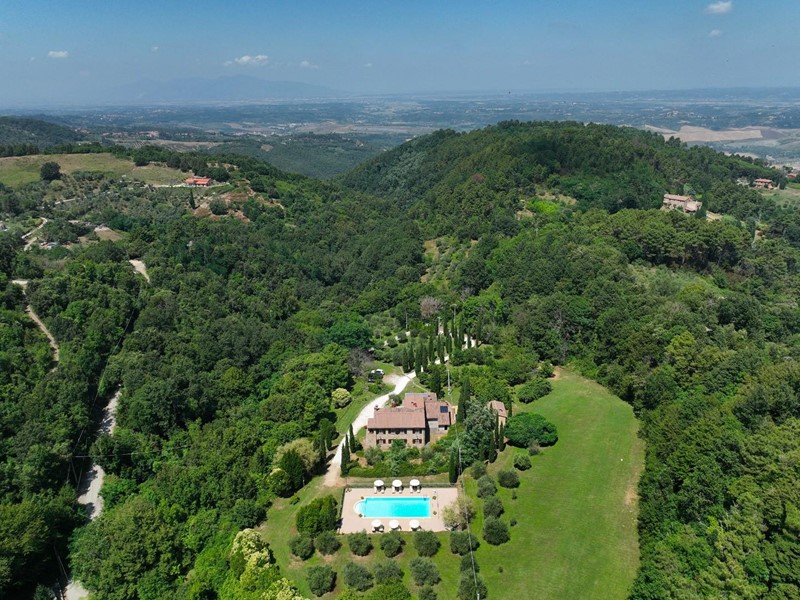 Stupenda villa immersa nel verde delle colline toscane. Il maestoso cancello apre le porte ad un viale di cipressi che conduce direttamente alla proprietà.