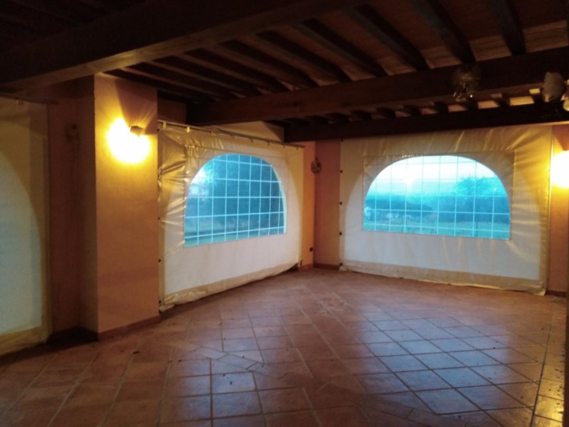 La proprietà comprende un casale in stile toscano di recente costruzione, caratterizzato dalla presenza di ampi loggiati, che si sviluppa su tre livelli fuori terra, quasi totalmente destinati ad abitazione, e un livello seminterrato con due locali di deposito, per una superficie complessiva di oltre 300 mq.