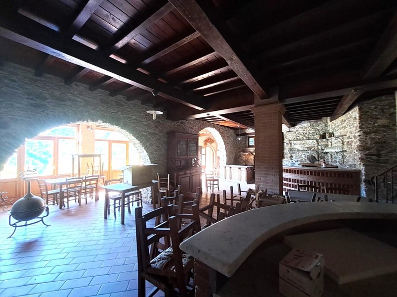 ALTA VERSILIA ZONA COLLINARE Locale uso ristorante-bar. Completamente ristrutturato con travi a vista stile Toscano, open-space composto al piano terra da due ampie sale, area forno a legna, cucina doppia professionale, servizi interni ed esterni, al piano superiore altro salone con terrazza loggiato. Area parcheggio riservata. Completa la proprietà appartamento attiguo con ingresso indipendente, composto da grande soggiorno con angolo cottura due camere da letto , bagno e loggiato esterno. Possibilità di trasformazione in attività B.&B.