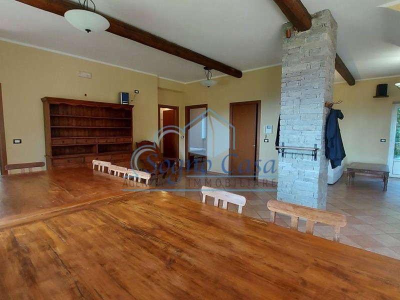 La villa completamente ristrutturata, di 420 mq, su due livelli trova una splendida e ampia zona giorno open space con un doppio salone e sala con camino in pietra. Questo ambiente ha un collegamento con l’esterno tramite porte finestre che danno all’ambiente molta luce. Una cucina vivibile con mobilio industriale (cappa, fuochi, etc) in accaio inox. Troviamo anche una zona giorno con camera matrimoniale e servizio con doccia. Ulteriore doppio servizio.