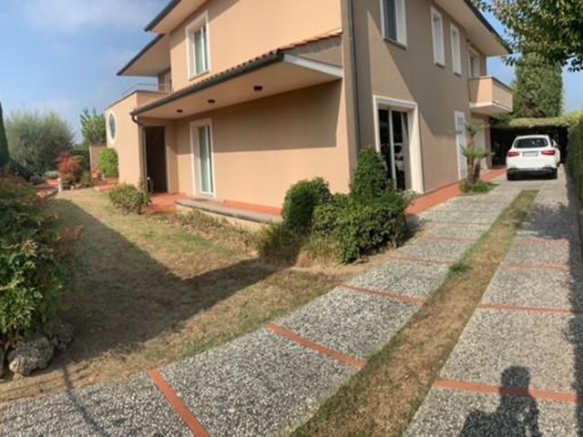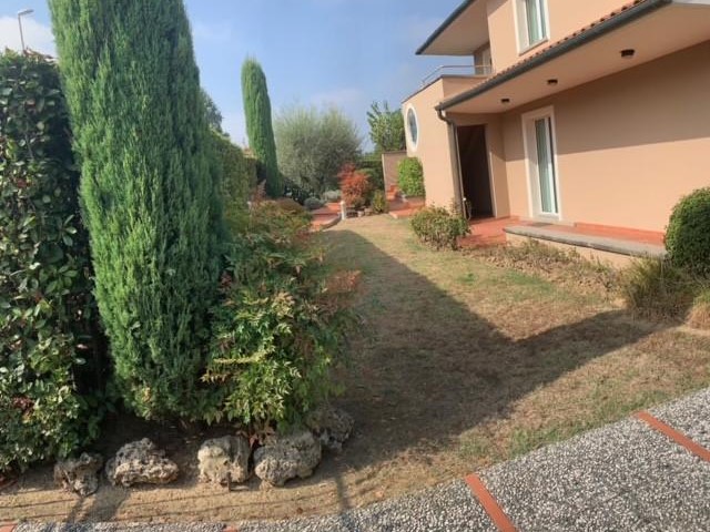 Castelfranco di sotto (PI) nel quartiere residenziale di San Bartolomeo immerso nel verde e contornato da belle abitazioni e villette, in zona tranquilla a due passi dal centro storico del paese e circondato da tutti i servizi, disponiamo in vendita questa bella villa singola costruita nei nei primi anni '90 ma rivista all'interno recentemente con tutti gli impianti a norma e infissi nuovi con doppio vetro camera a taglio termico e completamente climatizzata. La villa singola di circa 300 mq. + 50 di garage è circondata su tutti e 4 i lati da un giardino esclusivo di circa 400 mq. molto ben tenuto. Ottima soluzione anche per 2 nuclei familiari in quanto al piano terra è presente un primo appartamento con entrata indipendente composto da un ampio soggiorno con angolo cottura di circa 70/80 mq. molto bello con forno a legna, ampia camera da letto matrimoniale, bagno con finestra e doccia oltre ad un ampio garage di oltre 50 mq.. Mentre al primo piano abbiamo il secondo appartamento con entrata indipendente tramite scala esterna composto da un ampio soggiorno con terrazza abitabile, cucina abitabile con balcone, ripostiglio, stanza lavanderia, 3 ampie camere da letto alcune terrazzate di cui una con bagno padronale oltre ad un secondo bagno presente nel reparto notte, l'immobile è molto ben rifinito all'interno e pari al nuovo con la possibilità anche di acquistare dei bellissimi mobili su misura e di pregio, da vedere. Richiesta € 600.000 rif. 166