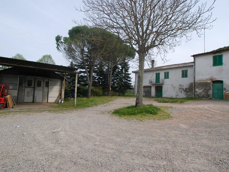Compendio immobiliare in piena campagna, ma vicino a tutti i servizi, costituito da un fabbricato principale di complessivi 680 mq, un capannone di circa 423 mq con 1550 mc di volume trasformabile in civile abitazione e due piccoli annessi. Il corpo principale, su due piani, ha al piano terra dei fondi ad uso magazzino e garage, mentre il piano primo, di circa 360 mq, è organizzato in due appartamenti anni '70-'80, entrambi con ingresso indipendente. Tutto il complesso è circondato da 4000 mq di terreno, con la possibilità di accorparne altri 5300 mq.