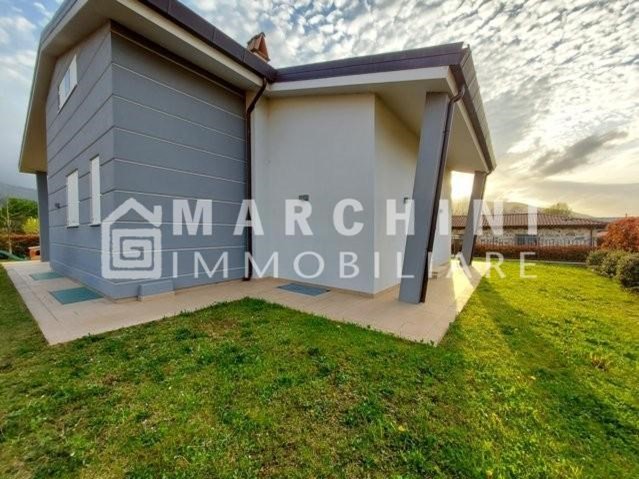 IA1624 - Proponiamo in vendita villa moderna corredata da ampia veranda e giardino privato con progetto già approvato per la costruzione di una piscina. La villa è elevata su 3 livelli, ma si sviluppa tutta sul piano terra rialzato. Mediante il bel porticato accediamo nella zona giorno open-space con salone e cucina; successivamente, attraverso un disimpegno accediamo nella zona notte dove vi sono due camere singole, bagno con doccia idromassaggio, camera matrimoniale con bagno en suite dotato di Jacuzzi e cabina armadi; al piano secondo troviamo la mansarda finestrata al grezzo, pertanto personalizzabile; infine nel piano seminterrato troviamo l'ampia taverna con camino, predisposizione 3° bagno e la 2° cucina con forno e barbecue, cantina e locale tecnico. L'immobile dispone inoltre di predisposizione impianto climatizzazione e allarme, videocitofono, riscaldamento a pavimento, cancello automatico, portoncino blindato e vetri doppi. Classe energetica "A"