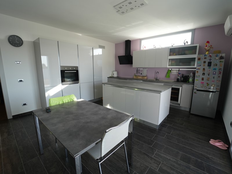 Al piano terra troviamo l'ingresso su soggiorno con scala che ci porta al primo piano, ampia cucina abitabile separata con porta-finestra che ci permette di accedere ad una piccola loggia esterna e dona un'importante luminosità all'ambiente, bagno, letto e centrale termica che da accesso diretto al garage.