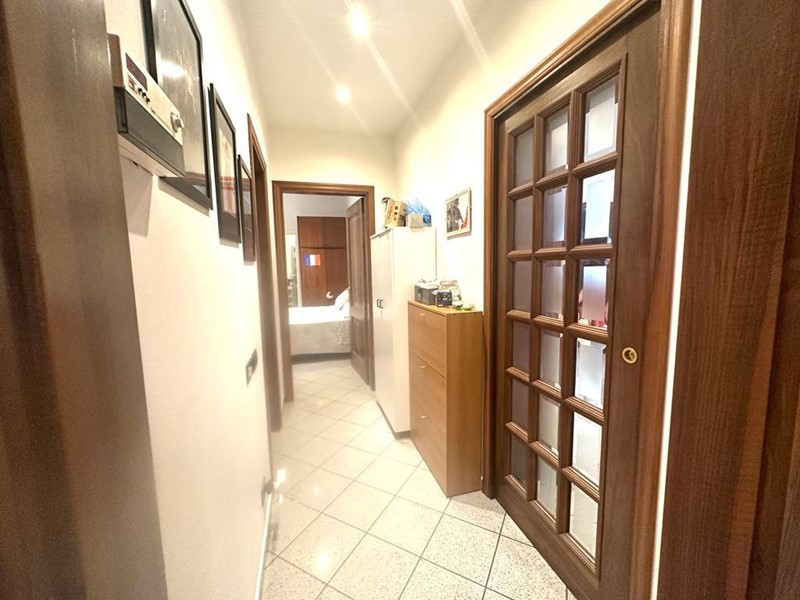 Al piano terra appartamento ristrutturato composto da ingresso, salotto ampio, cucina con camino, disimpegno zona notte, due camere matrimoniali, due bagni e accesso alla cantina.