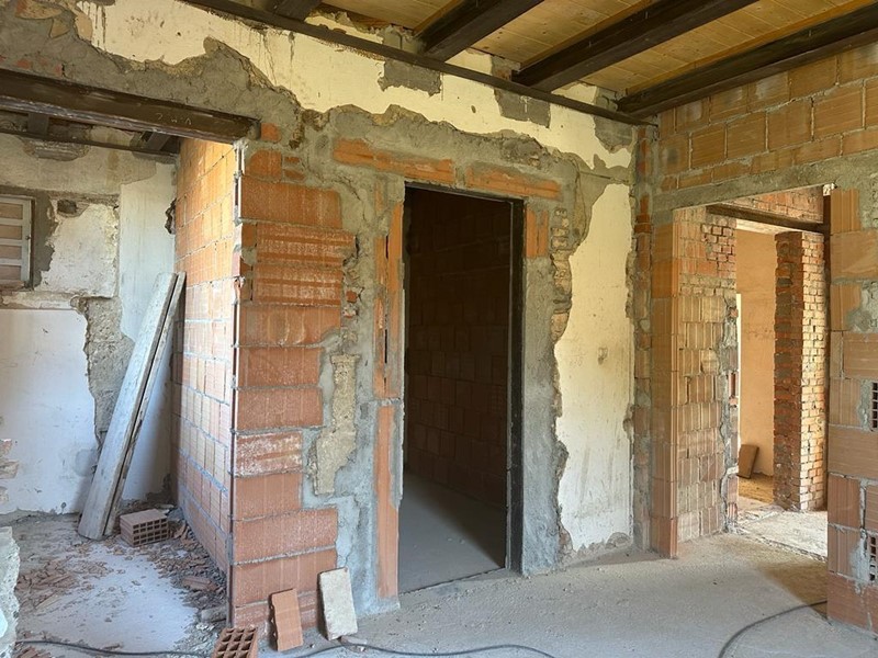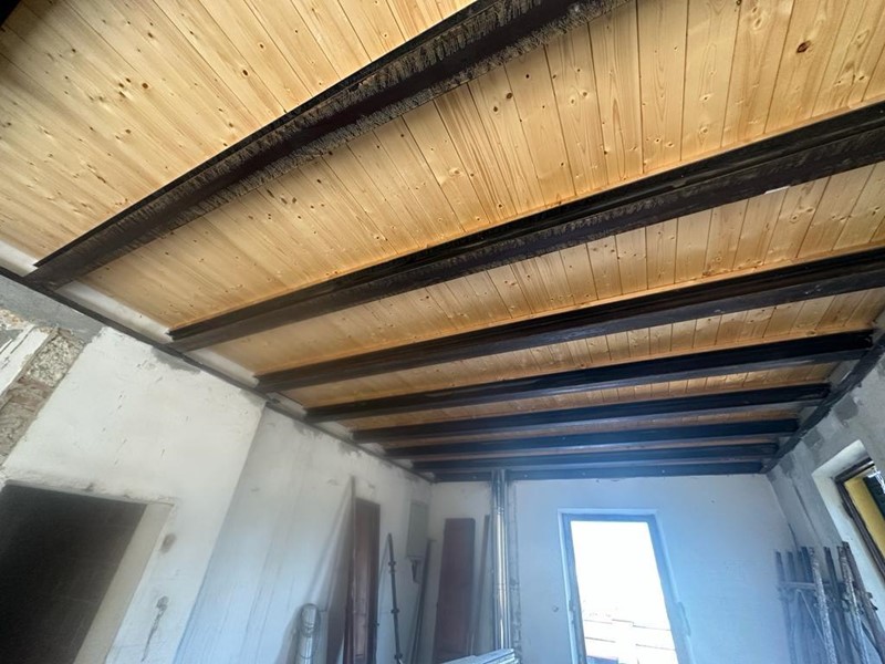 Al piano primo con accesso indipendente da scala esclusiva, appartamento allo stato grezzo, composto da grande soggiorno cucina open Space con affaccio sulla bellissima terrazza di 60 mq, ripostiglio, disimpegno zona notte, due camere matrimoniali di cui una con reparto guardaroba e bagno en suite, camera singola e ulteriore bagno. Dalla zona giorno predisposizione per accesso alla mansarda. L‘appartamento al piano primo viene venduto allo stato attuale con i lavori da terminare, nella parte di impiantistica, rifiniture, infissi, rivestimenti.